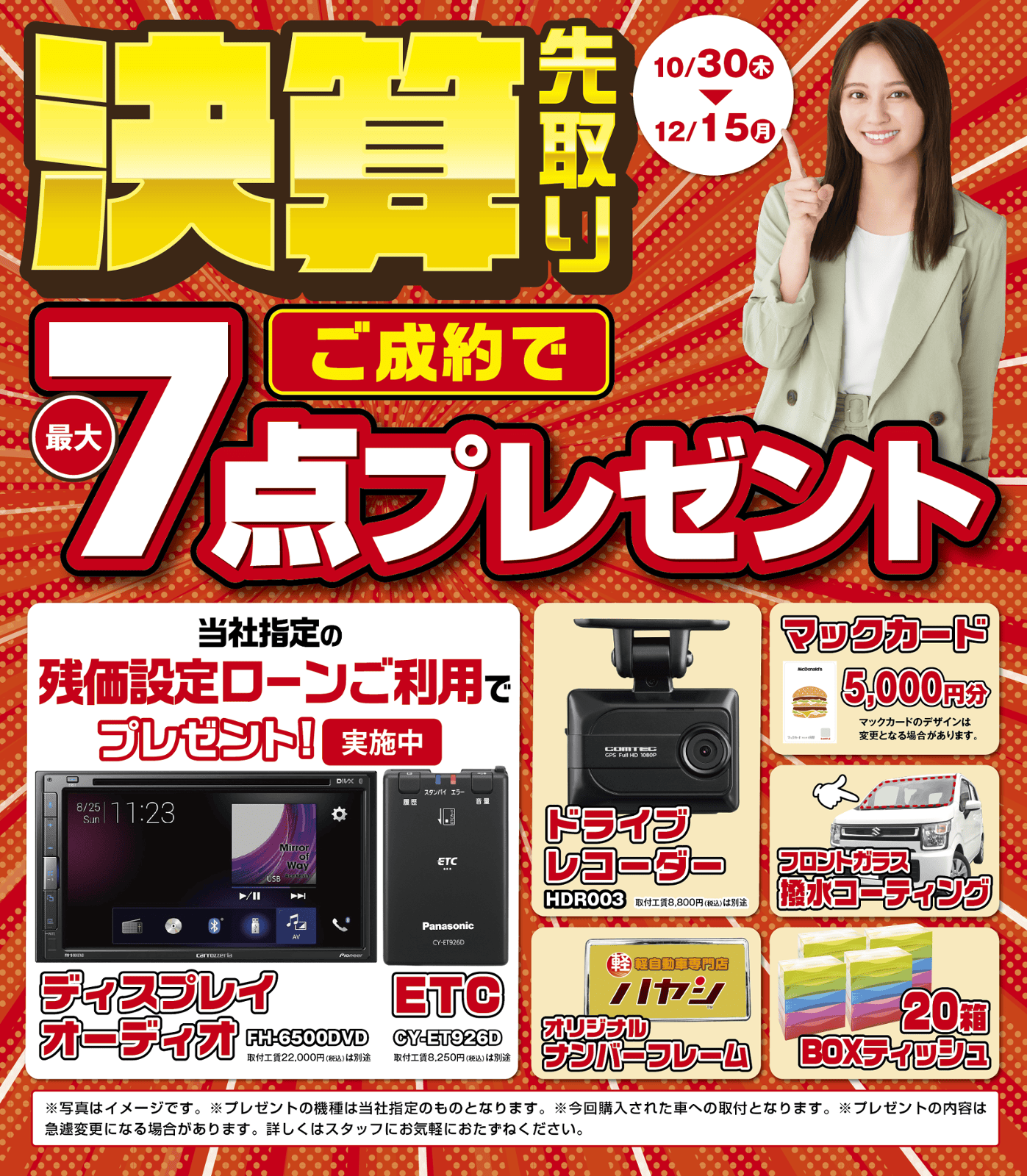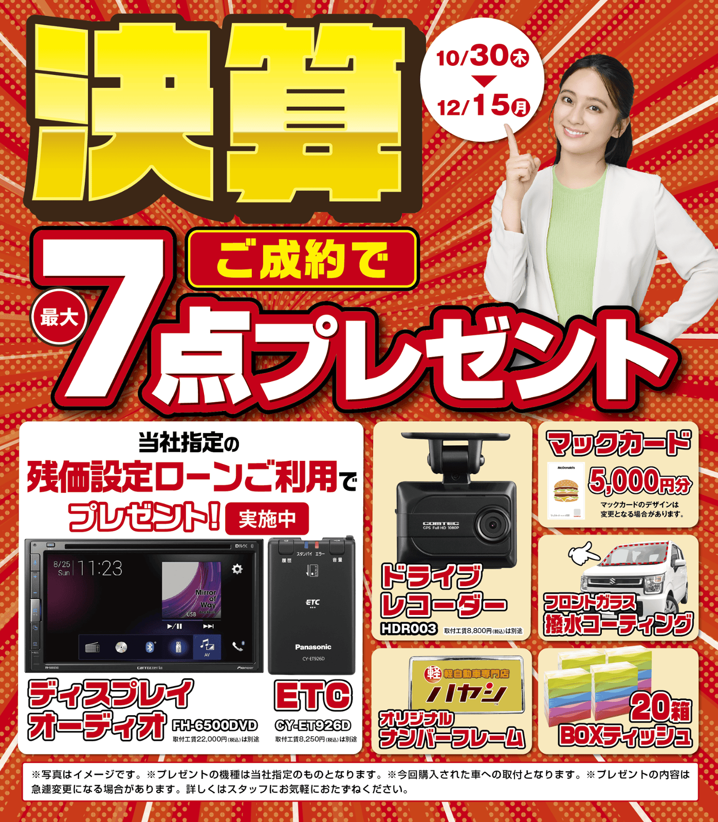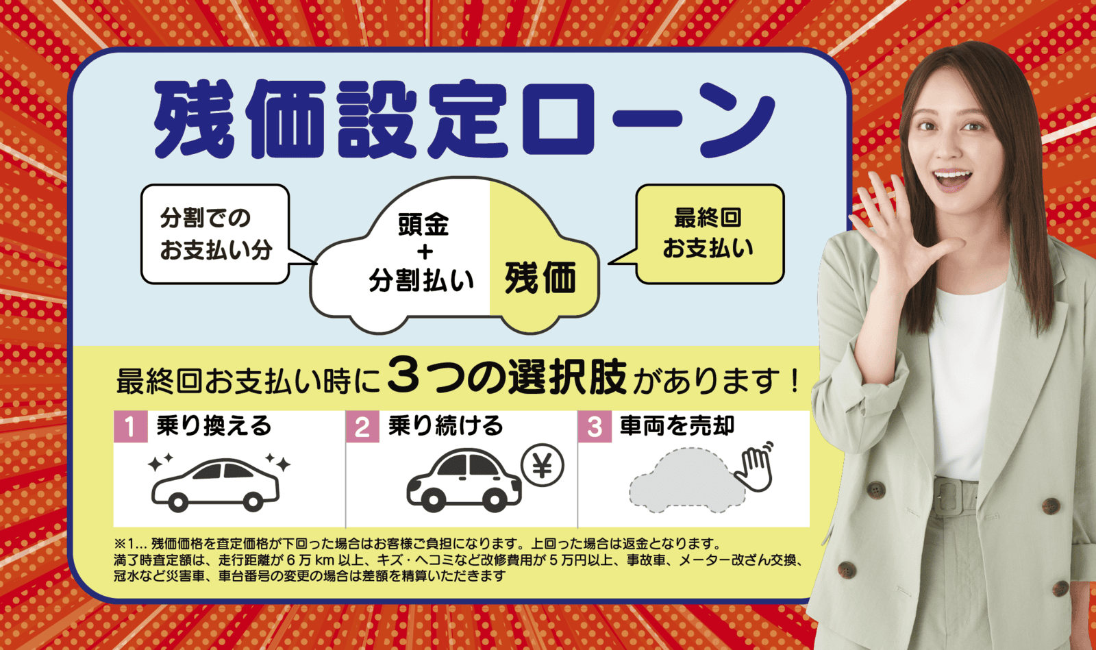ハヤシでは現金支払いだけでなく、ローン・リース・残価設定ローンなど幅広い買い方をご提案させていただきます。